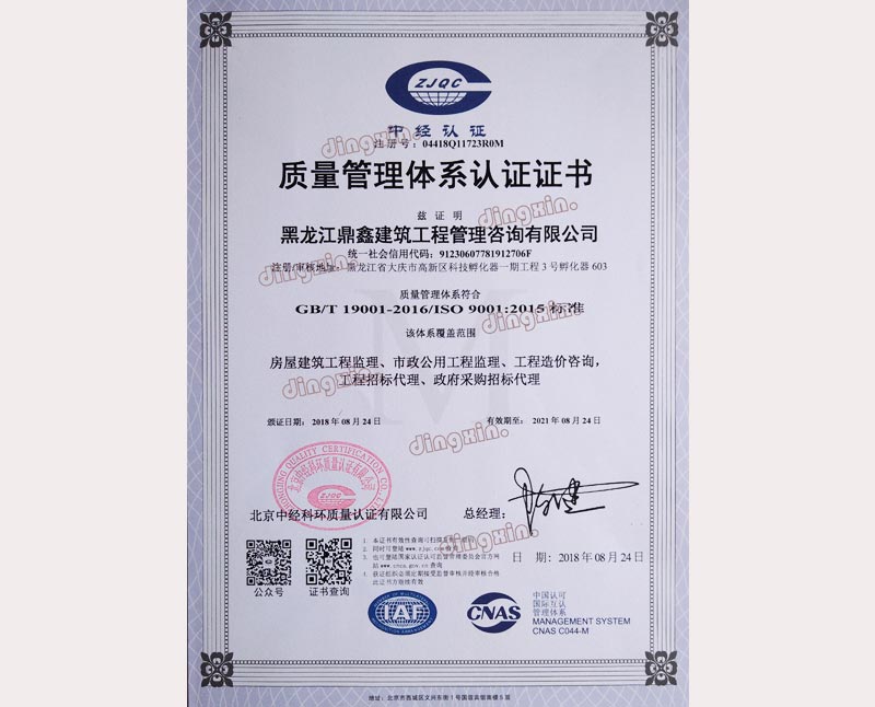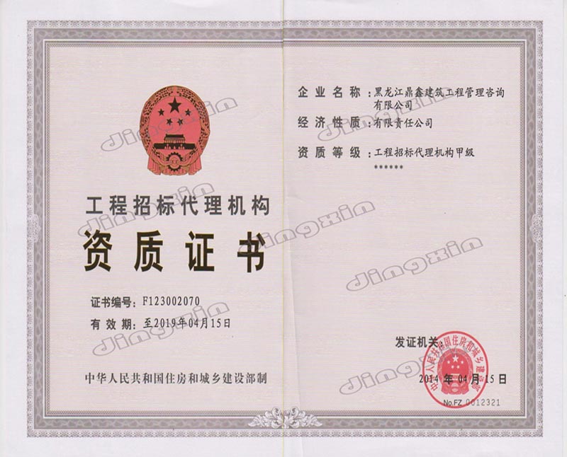 黑龍江鼎鑫建筑工程管理咨詢有限公司成立于2005年,注冊資金400萬元。具備中華人民共和國住房和城鄉(xiāng)建設部批準的工程招標代理機構資格、中華人民共和國財政部批準的政府采購招標代理機構資格、黑龍江省商務廳批準的機電產品國際招標代理機構資格、中華人民共和國住房和城鄉(xiāng)建設部批準的工程造價咨詢甲級資質、黑龍江省住房和城鄉(xiāng)建設廳批準的房屋建筑工程監(jiān)理乙級(市政公用工程監(jiān)理乙級資質)。主要從事建設工程及政府采購招標、造價咨詢、工程監(jiān)理、項目管理等業(yè)務。
